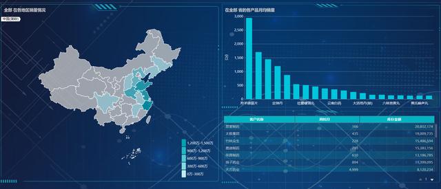 首先,我發(fā)現(xiàn)山東省的銷量很高,點(diǎn)擊之后有自然的聯(lián)動(dòng)效果,發(fā)現(xiàn)對(duì)應(yīng)**藥品的銷量是最高的。